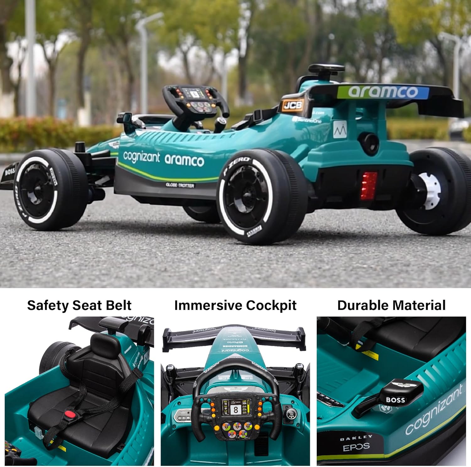 Officially Licensed Aston Martin F1 Design: This ride-on car features an authentic, officially licensed Aston Martin F1 design, providing a true driving experience for kids aged 37 to 95 months.