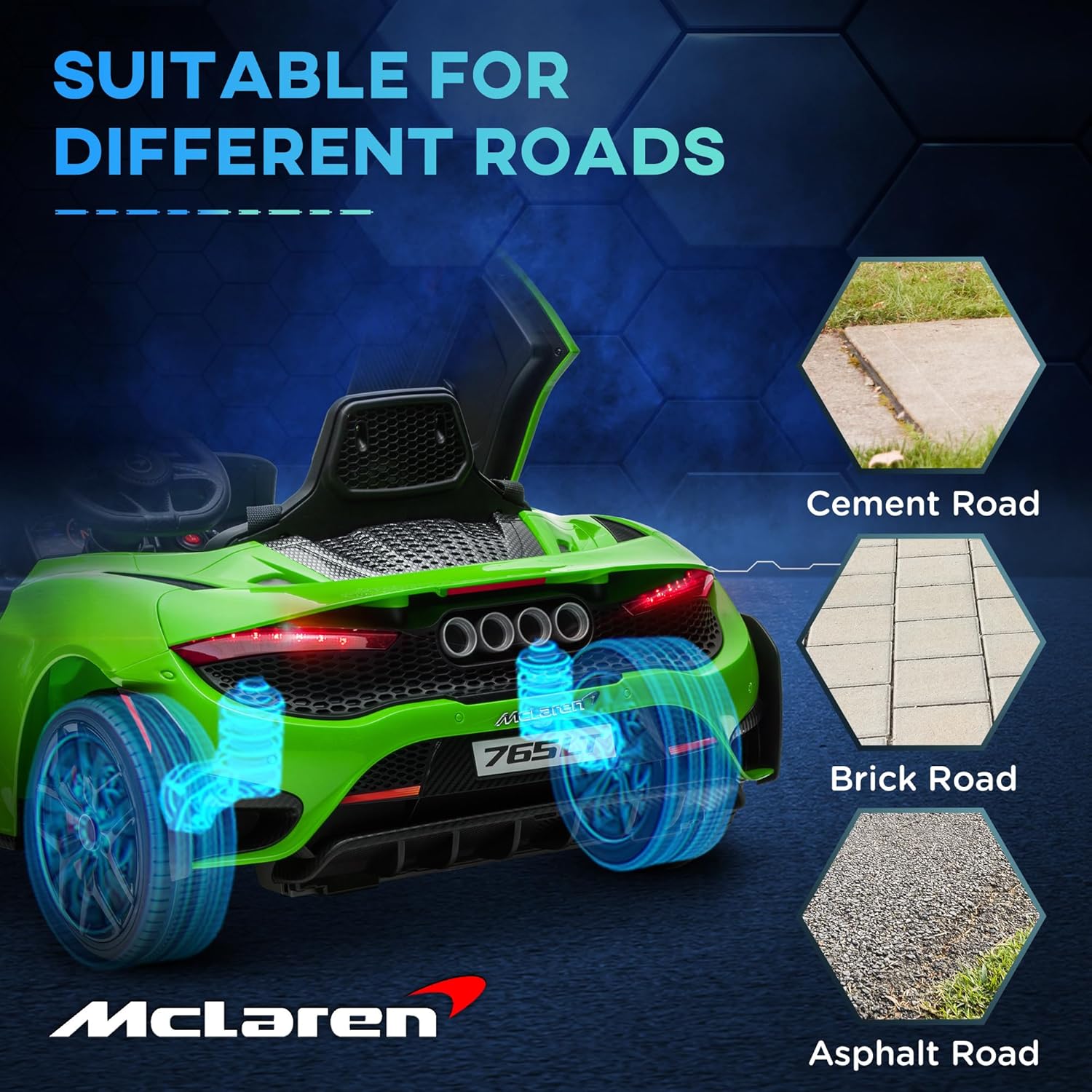Licensed McLaren Design: This kids' car features exclusive McLaren 765LT licensing, complete with butterfly doors and a soft start function for a smooth, safe ride.